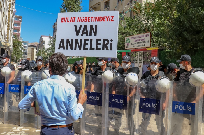 Aileler, HDP İl Başkanlığı önünde bir süre oturma eylemi yaptı.