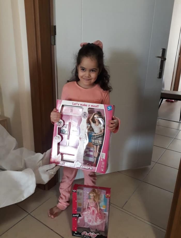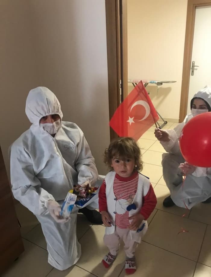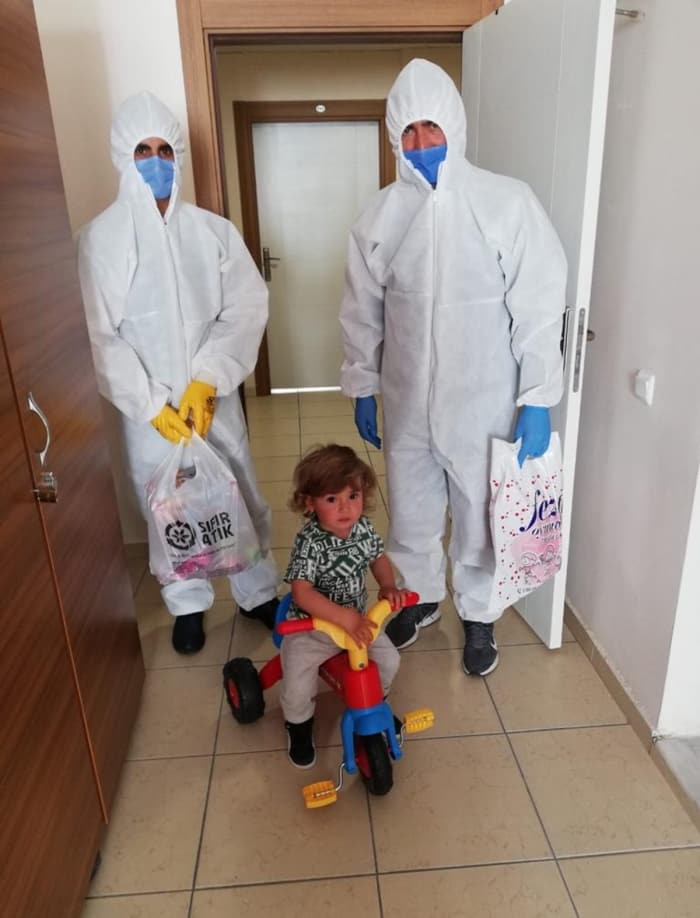 Vefa Sosyal Destek Grubu görevlileri, yurtta aileleriyle gözlem altında tutulan çocuklara oyuncak sürprizi yaptı.