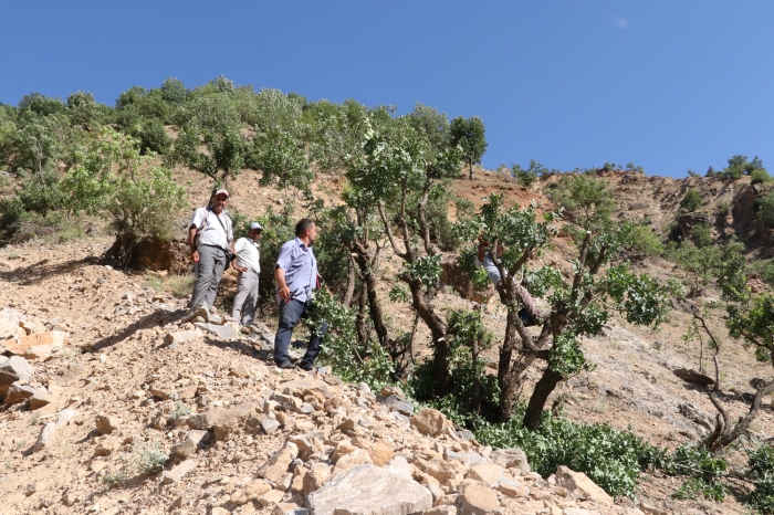 Vatandaşlar, daha önce köylülerce yakacak olarak kullanılan ağaçlara ucuz bir maliyetle Siirt fıstığı aşılıyor.
