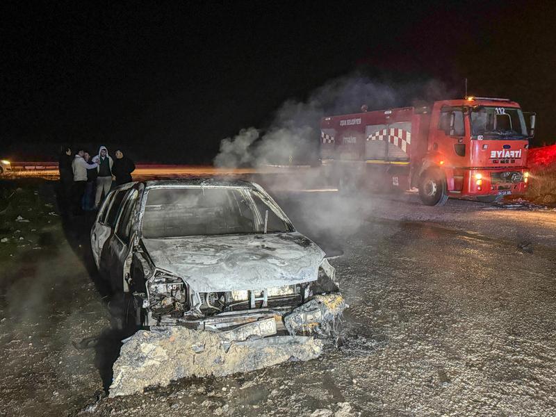 Ekipler, kullanılamaz hale gelen otomobilin içinde bir kişinin yanmış cesedini buldu.