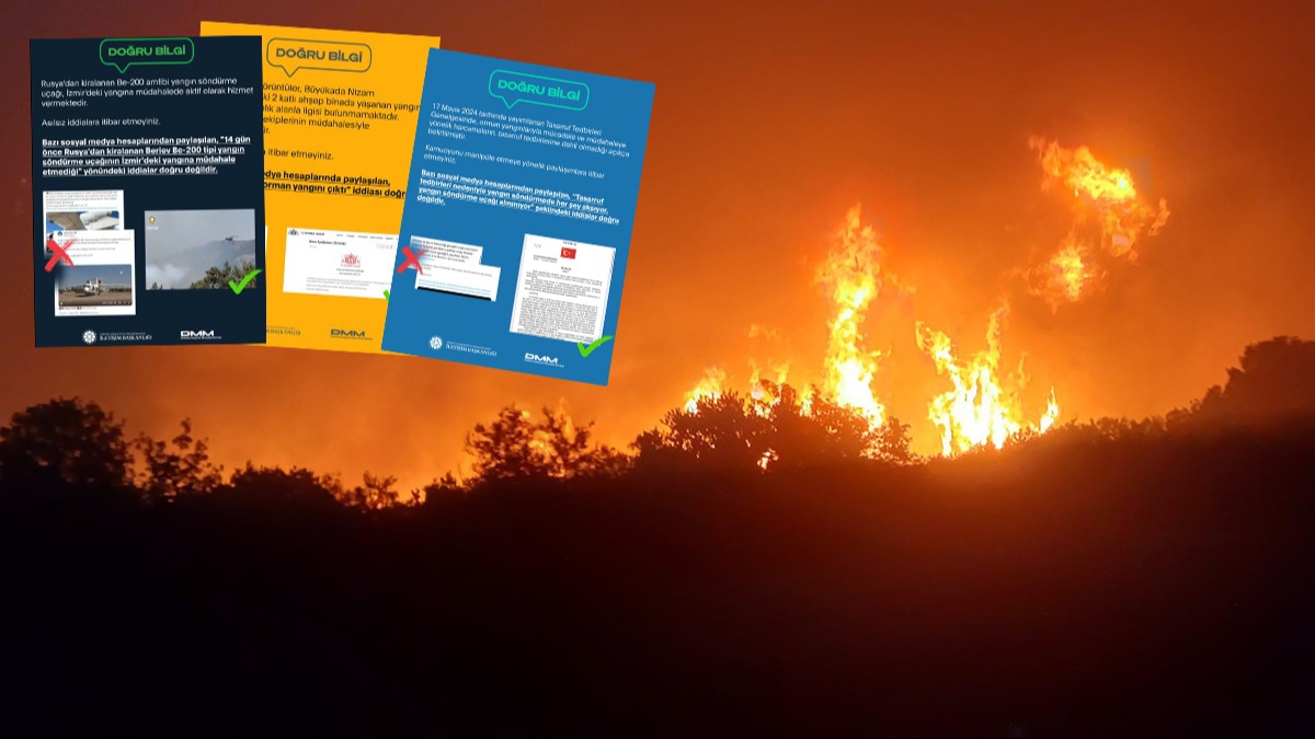 Cumhurbaşkanlığı İletişim Başkanlığı Dezenformasyonla Mücadele Merkezi (DMM), Türkiye'nin birçok noktasında meydana gelen yangınlarla ilgili asılsız iddialara itibar edilmemesi gerektiğini duyurdu. Dezenformasyonla Mücadele Merkezi, 'Büyükada'da orman yangını çıktı' iddiasını yalanlarken, Rusya'dan kiralanan yangın söndürme uçağının İzmir'deki yangına müdahale etmediği iddiasının doğru olmadığını bildirdi. Öte yandan DMM, tasarruf tedbirleri nedeniyle yangın söndürme çalışmalarının aksadığı iddialarını da çürüttü.