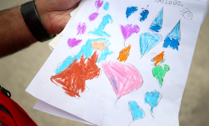 "Türkiye komple burada. Okullardan kreşlere Türkiye'nin her köşesinden yardımlar geliyor. Kovid-19 sürecinde olduğumuz için kolilerin üzerinde 'dezenfekte edilmiştir' notları buluyoruz. Gıda ürünlerinden tutun da elindeki küçük miktardaki para ile aldığı oyuncağı, kendi battaniyesini gönderen minik eller var. Çok mektup var ve hepsi birbirinden duygulu. Kumbarasını açıp 10 lirasını gönderen de var. Türkiye birlikte güzel. Doğrudan Türk Kızılaya kargo gönderenler de bulunuyor. Herkese minnettarız."