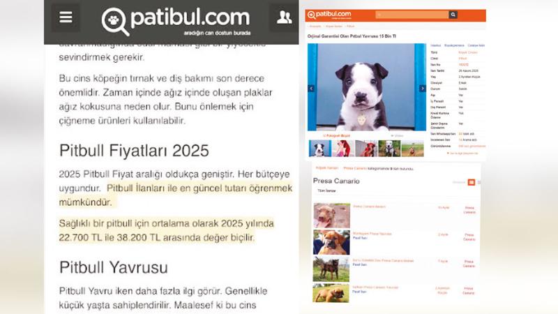 AKŞAM'ın ulaştığı ilan sitelerinde 'pitbull' kategorisi altında yavru ve yetişkin köpeklerin alenen satışa çıkarıldığı belirlendi. Satıcılar 'orijinal garantili', 'blueline', 'safkan prese' gibi ifadelerle yasadışı ırkı pazarlıyor. Bazı ilanlarda, bir evcil hayvan satışı yapılıyormuş gibi 'aşıları yapıldı', 'erkek–dişi mevcut', 'şehir dışına teslim edilir' gibi detaylar bulunuyor. Fiyatların 22 bin TL'den başlayıp 38 bin TL'ye kadar çıktığı listeler, bu yasadışı ticaretin ekonomik boyutunu da ortaya koyuyor. Sitelerde üyelik oluşturan kullanıcılar, tek tıkla köpek satış ilanı verebiliyor.