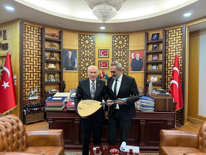 MHP Genel Başkanı Devlet Bahçeli, sanatçı Yavuz Bingöl'ü makamında misafir etti.