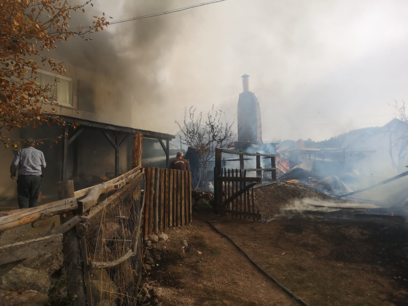 Ekiplerin müdahalesiyle söndürülen yangında, 2 ev kullanılamaz hale geldi, 1 evde hasar oluştu.