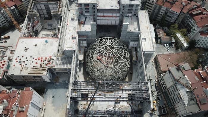 Yeni Atatürk Kültür Merkezi'ndeki çalışmalar havadan fotoğraflandı. Görüntülerde çelik konstrüksiyon işlemlerinin tamamlandığı, işçilerin bağlantıları yaptığı görülüyor.İnşaatın ise 24 Aralık 2020 tarihinde tamamlanması hedefleniyor