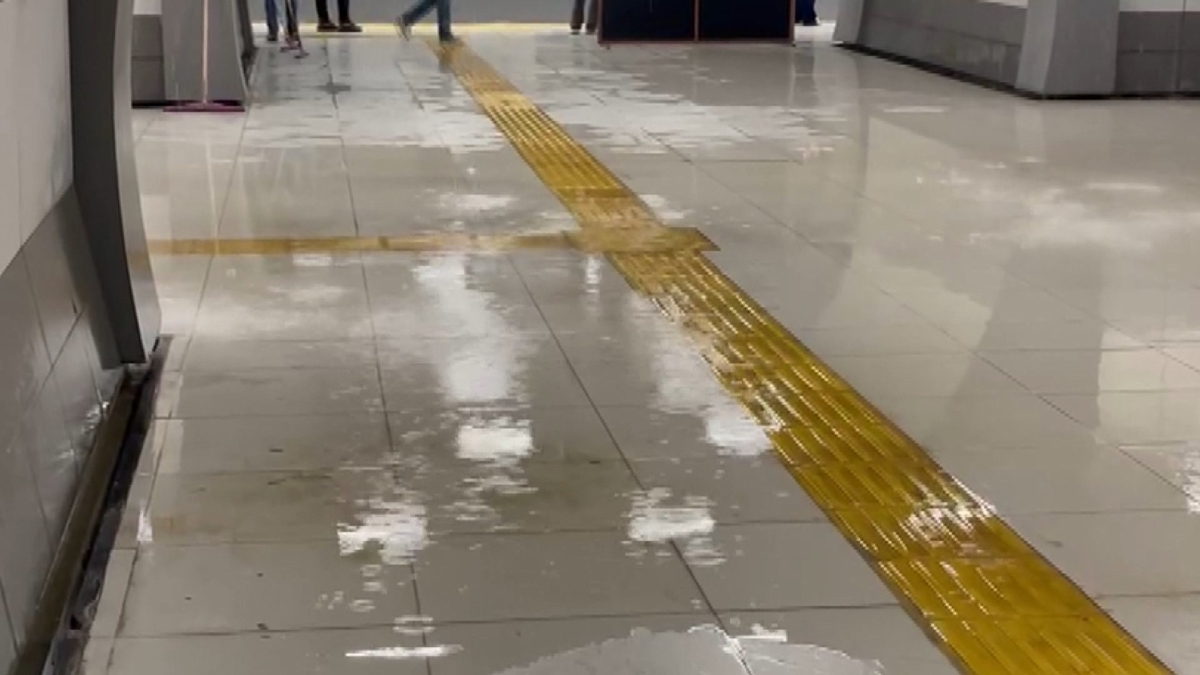 İstasyonun içinde su birikintisi oluşurken, görevliler suyu tahliye etti. İstasyona kaygan zemin yazılı uyarı tabelaları yerleştirilirken, bazı yerler de paravanla kapatıldı.