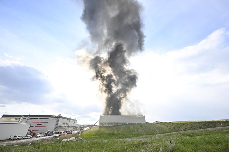 Ankara'nın Yenimahalle ilçesinde bir mobilya deposunda çıkan yangına müdahale ediliyor.