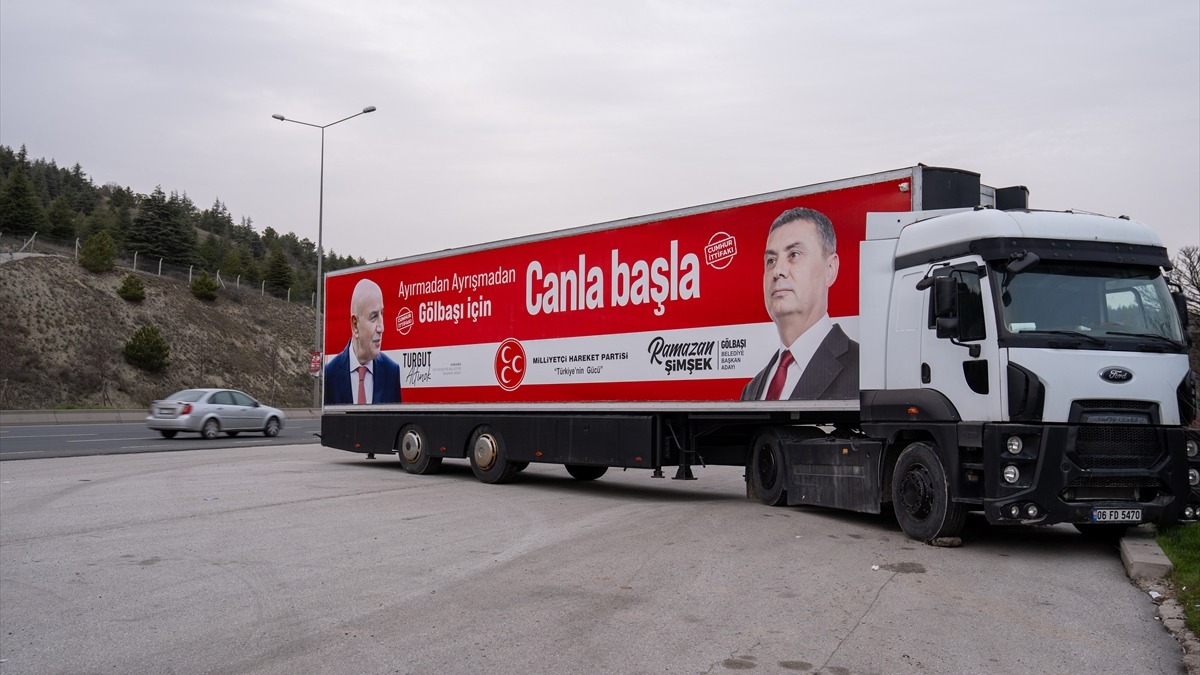 Ankara'nın işlek cadde ve sokakları ile şehirlerarası yollara park edilen römork, tır, minibüs ve kamyonet gibi araçlar da partilerin kurumsal renkleri, logoları ve adayların fotoğraflarıyla giydirildi.