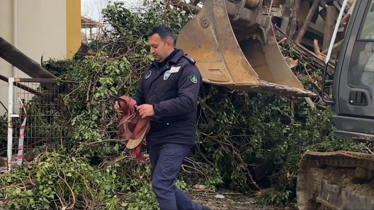 Bolu Belediyesi ekipleri tarafından gerçekleştirilen kontrollü yıkım sırasında, bina içerisinde asılı Türk bayrağı zabıta personelinin dikkatini çekti. Yıkım çalışmasını durduran Bolu Belediyesi zabıta personeli, iş makinesinin kepçesine çıkarak bayrağı bulunduğu yerden aldı. Personelin Türk bayrağına gösterdiği hassasiyet, çevredekiler tarafından takdirle karşılandı.