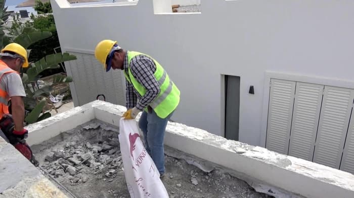 Bodrum Belediyesi Yapı Kontrol Müdürlüğü gözetiminde işçiler, bugün, villanın terasının yıkımına başladı. Şu ana kadar 2.5 ton moloz yığını oluşması, kaçak eklentilerin boyutunu gözler önüne serdi.
