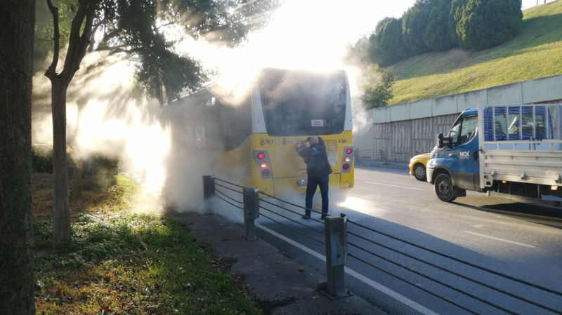 Kağıthane-Piyalepaşa Tüneli girişinde, 34 TP 6507 plakalı İETT otobüsünün motor bölümünde yangın çıktı. Yolcu bulunmayan otobüsü durduran şoför, yangın tüpüyle alevlere müdahale etti.