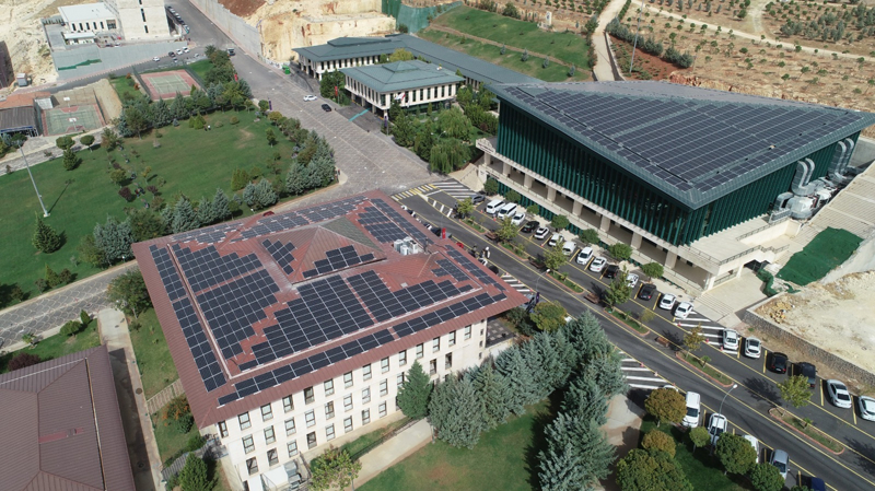 Hasan Kalyoncu Üniversitesi üniversite binalarının çatılarına ve araziye kurduğu 2 megavat gücünde güneş enerjisi sistemleriyle enerji ihtiyacının yüzde 51'ini karşılarken, ürettiği enerjinin fazlasını ilgili yönetmelikle belirlenen ücret karşılığında Gaziantep'teki elektrik dağıtım şirketine satarak gelirine katkıda bulunuyor.