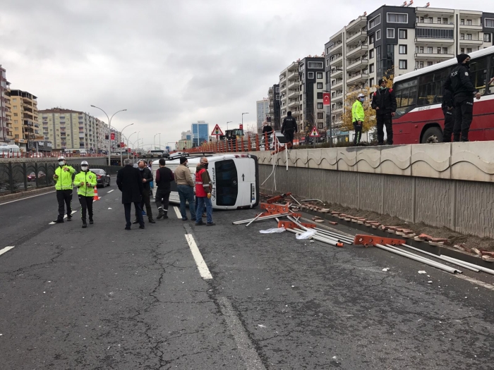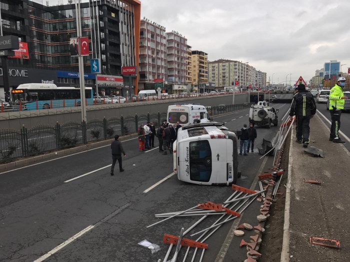 Alınan bilgiye göre, Ahmet Malkoç yönetimindeki 21 M 0221 plakalı yolcu minibüsü, Yenihal Köprülü Kavşakta sürücünün direksiyon hakimiyetini kaybetmesi sonucu yan yoldan ana yola devrildi.