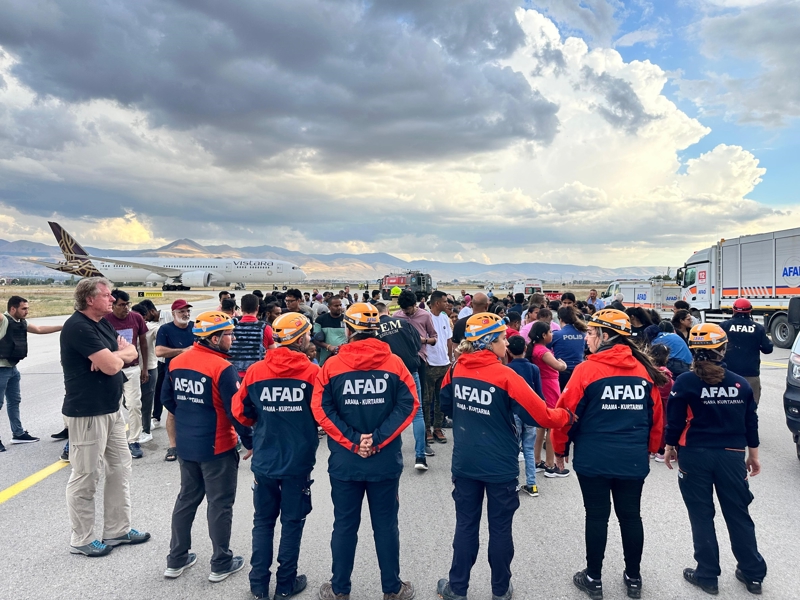 AFAD ekipleri, uçaktan tahliye edilen yolcuları güvenli şekilde üzerlerinde arama yapıp araçlarla havalimanı içine taşındı. Burada ekiplerce yolculara ikramlar yapıldı.