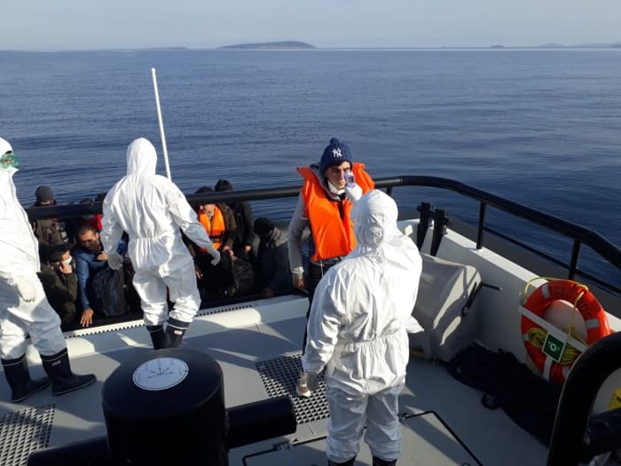 Sahil Güvenlik Komutanlığından yapılan açıklamaya göre, yardım talebi üzerine sahil güvenlik ekipleri, Çıplak Ada açıklarında, Yunan sahil güvenlik unsurları tarafından Türk kara sularına geri itilen lastik botta kurtarılmayı bekleyen sığınmacılara ulaştı.