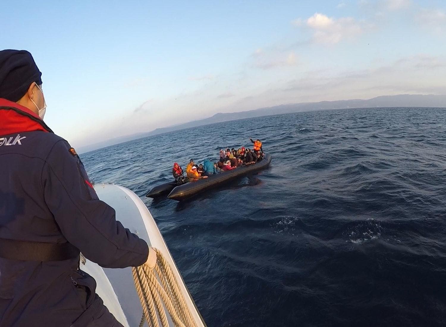 Fırtına nedeniyle zorlanan göçmenler, Yunan sahil güvenlik ekiplerince Türk kara sularına doğru geri itildi.