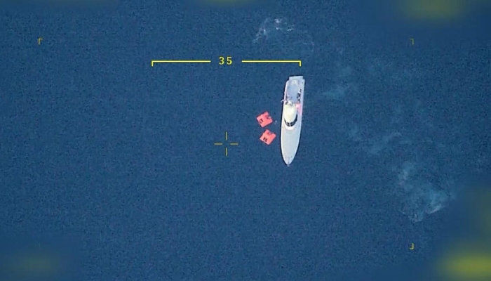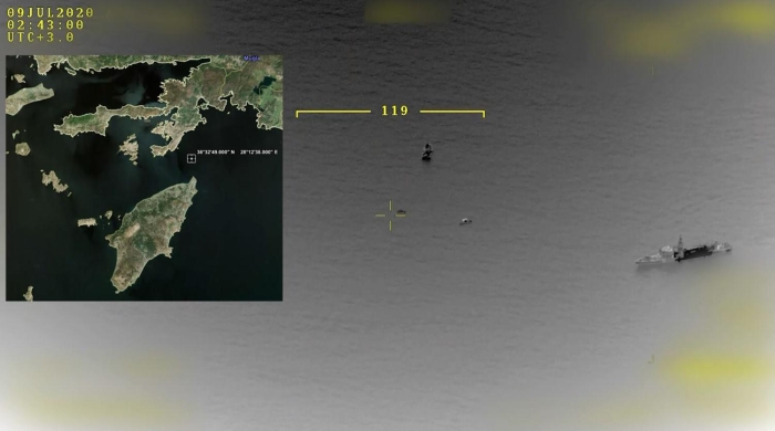 Ege'de Yunan sahil güvenlik gemisinin açık denizde ölüme terk ettiği düzensiz göçmenlere, Türk sahil güvenlik unsurlarının yardım eli uzattığı anların insansız hava aracıyla (İHA) çekilen görüntüleri ortaya çıktı.