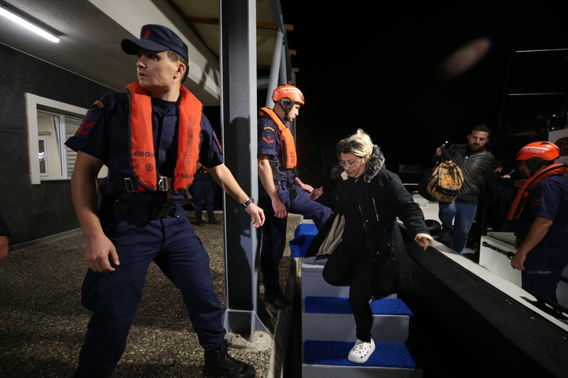 Bu botu halat yardımıyla "TCSG-907" Sahil Güvenlik Komutanlığı botunun arkasına bağlayan ekipler, içindeki kişilerin can güvenliklerini sağladı.