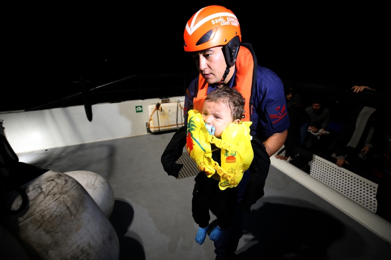 Dalgalarla mücadele ederken ıslanan, soğuktan üşüyen düzensiz göçmenlere, Sahil Güvenlik botuna alındıktan sonra battaniye dağıtıldı, su ve kek ikram edildi. Bu sırada bazı çocukların ağladığı görüldü. Kurtarılan bir baba, kucağına aldığı 1 yaşındaki oğlu Sinan'ı öperek sakinleştirmeye çalıştı.