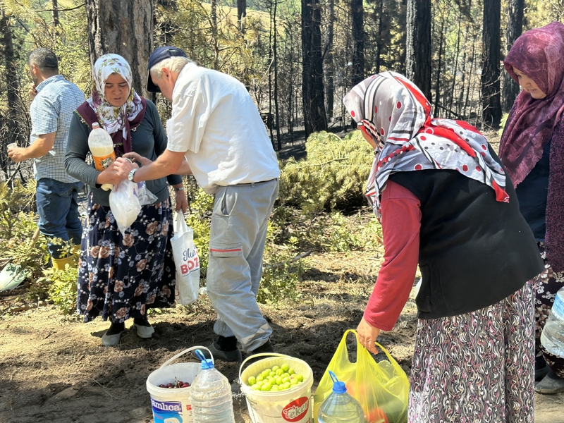 Baraklı Mahallesi'nde yaşayan köylülerden kimi kendi traktörü ile söndürme çalışmalarına destek verdi. Kimi de eline kürek alarak çalışmalara kaldı. Köylü kadınlar ise evde yaptıkları ayranlar bahçelerinden topladıkları erik ve kirazlar ile yangın bölgesine giderek ekiplere ikramda bulundu.