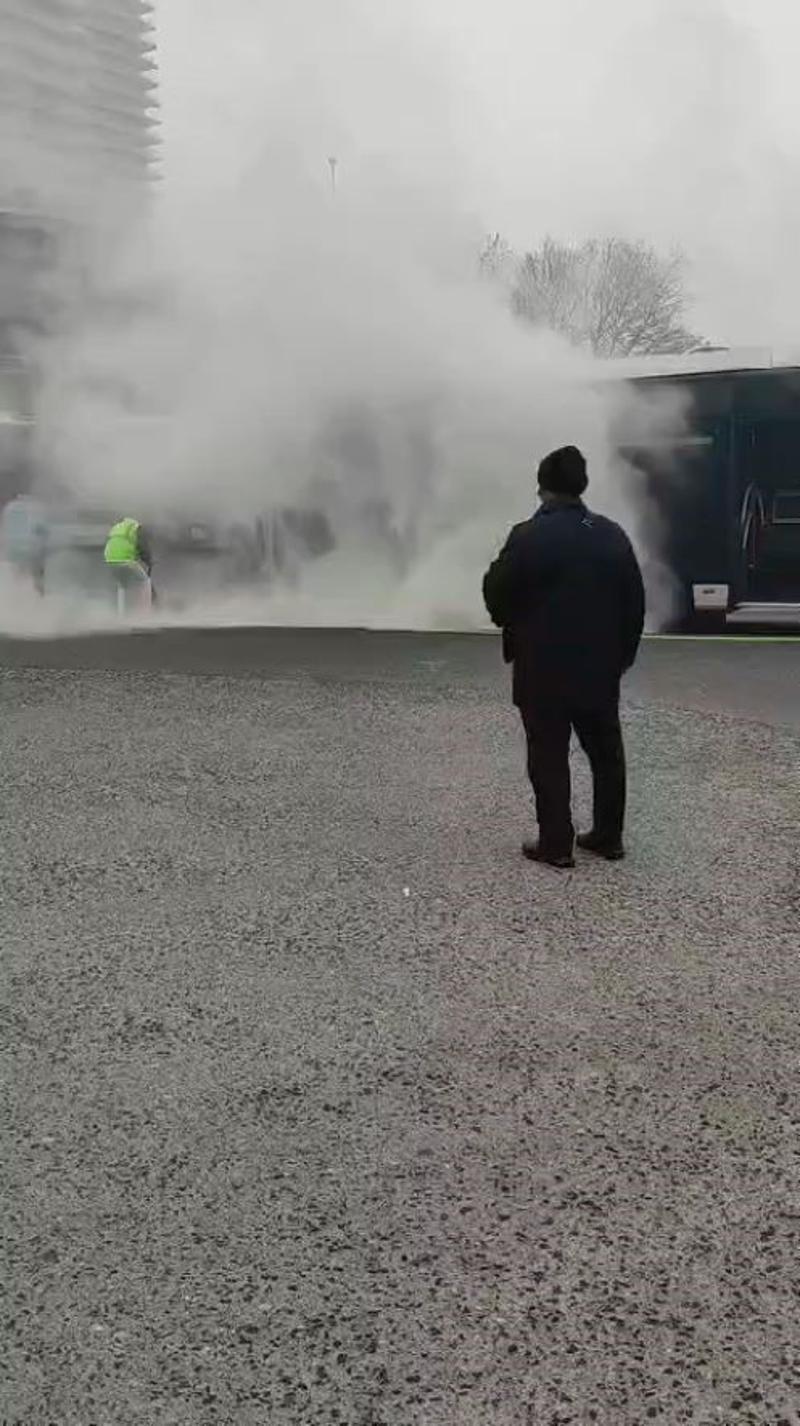 Metrobüsten yükselen dumanlar ise çevredeki bir vatandaşın cep telefonu kamerasına yansıdı.