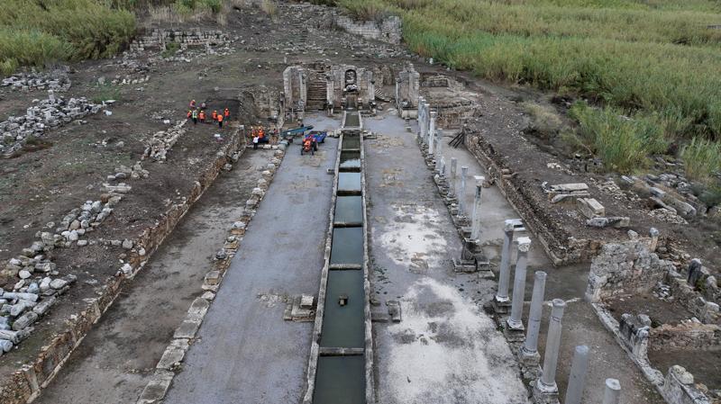Antik çeşmenin o dönemde 3 kilometre uzaklıktaki nehir tanrısı olarakta bilinen Kestros Nehri'nden su kaynağını aldığını hatırlatan Dönmez, çeşmenin aktığı suyun 700 metre kanaldan loluşan lüks sayılacak havuzdan akıtıldığını anlattı.