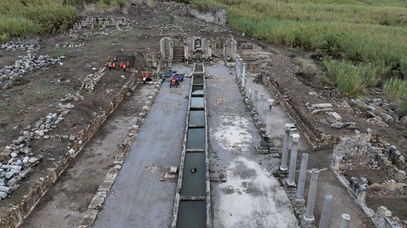 Eski ihtişamına kavuşması için kazı, onarım ve restorasyon çalışmalarının devam ettiği Perge'de, Kültür ve Turizm Bakanlığının destekleriyle yaklaşık 2 yıl önce başlatılan antik "Kestros Çeşmesi"ndeki su akıtma çalışmaları tamamlandı.
