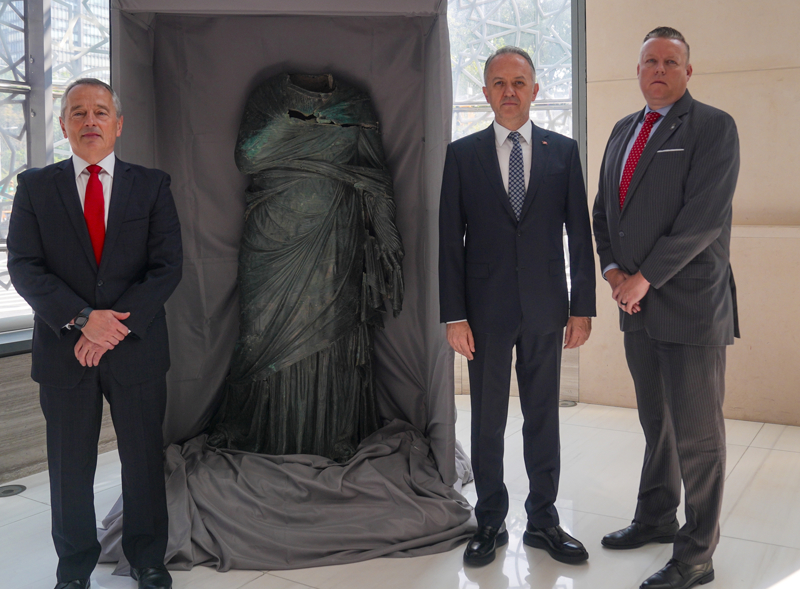 Kaçak kazılar sonucu, izinsiz yurt dışına çıkarılan bu heykel başlarından "bronz genç erkek başı" olarak adlandırılan eserin iadesi için yaklaşık 40 yıl süren bilimsel çalışma ve analizlerin yapıldığı belirtildi.