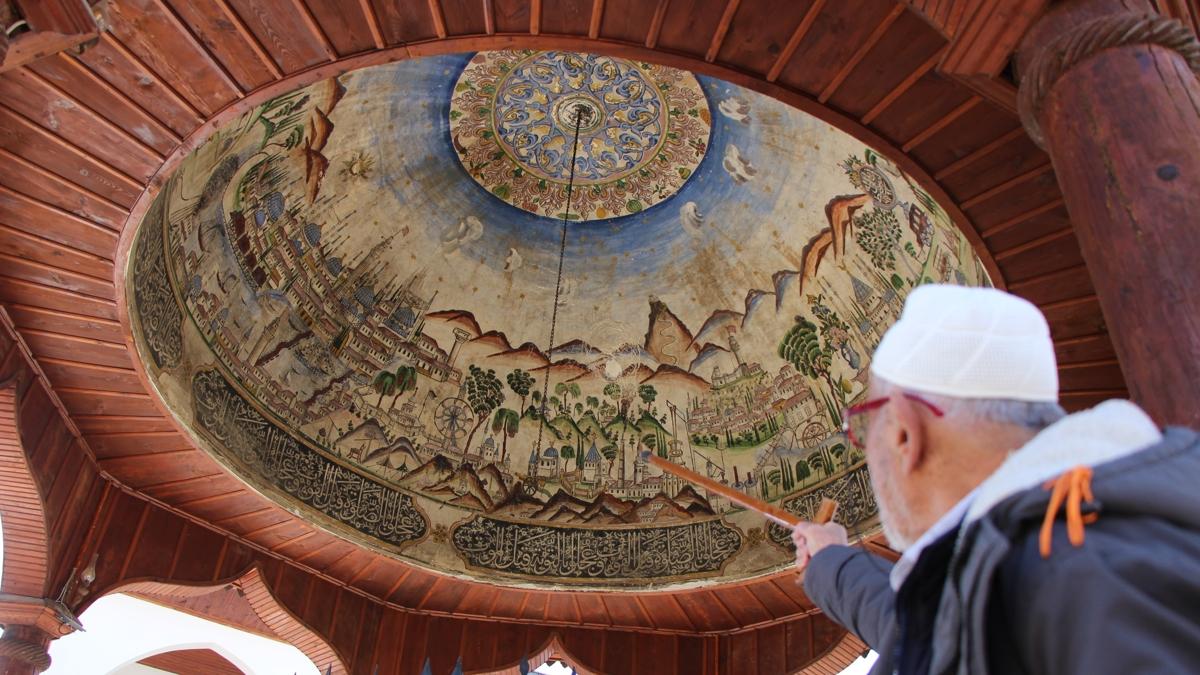 360 yıllık Kara Mustafa Paşa Camii'nin avlusundaki ahşap şadırvanın külah bölümüne 1865 yılında nakkaş Zileli Emin tarafından işlenen eser, geç dönem Osmanlı resim sanatının seçkin örnekleri arasında gösteriliyor.