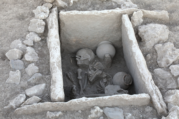 İçinde 400'den fazla bireye ait kemik ve kafatasının depolandığı "Kafataslı Yapı", mozaikli yapı "Terrazo Binası"nın gün ışığına çıkarıldığı höyükte ilki geçen yıl bulunan sandık tipi mezarın bu yıl yenilerine ulaşıldı.