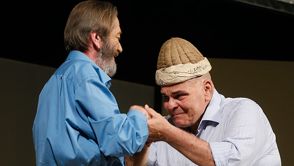 "Ferhan Şensoy'un çırağıyım. Burada, karşılıklı bir sürü ustalarla oynadım. Rahmetli Erol Günaydın'la, Tuncel Kurtiz'le oynadım. Münir abiyle oynadık. Ferhan Şensoy zaten başöğretmenim. Zeliha Berksoy'la, Derya Baykal'la oynadık. Bu saydıklarımın hepsiyle, burada, karşılarında oynarken eğitim aldım. Bunlar benim konservatuvarım. Dolayısıyla ben bugün bu kavuğu ustamdan alıyorsam, 35 sene sonra ben beratımı alıyorum diye düşünüyorum."