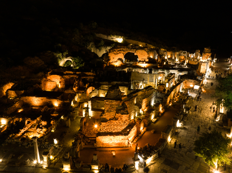 Kültür ve Turizm Bakanlığının Efes Antik Kenti'nde aydınlatma projesini hazırlayarak uygulamaya koyduğunu ve artık saat 24.00'e kadar da ziyaretçilere açık olacağını belirten Elban, şunları söyledi: