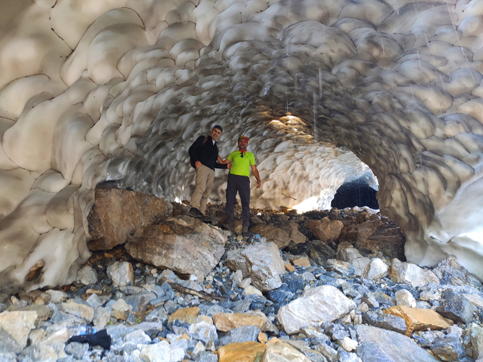 Ağustos ayında serinleme fırsatı bulan ziyaretçiler görsel bir güzellik sunan kardan tünelleri objektiflere yansıttı.