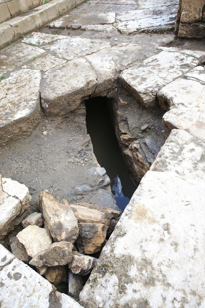 "2019'daki çalışmalarımızda kuzey şehir kapısından itibaren kuzey caddede, batı caddesinde, Roma hamamında ve kütüphanede kanalizasyon sistemini bulmuştuk. Bunların hepsi caddelere bağlanıyor. Bu caddelerde birleştikten sonra kanalizasyon sistemi dereye doğru yöneliyor. Oradan kente hiçbir rahatsızlık vermeden boşaltıyor. En son yaptığımız çalışmalarda tiyatronun üst kanal sistemini bulduk. Alt kanalı da uzun süreden beri araştırıyorduk. Bu arada yoğun bir şekilde Geleceğe Miras Projesi kapsamında çalışma da yürüttük. Kanalı da en sonuna geldik kanal bitti zannettik derken yağmurda denk geldik ve kanalizasyon sistemi çalışıyordu. Tiyatronun tüm caveasında (oturma bölümleri) toplanan sular kanalizasyondan geliyor ve halen bugün yapılmış gibi kanal sistemi devam ediyor."