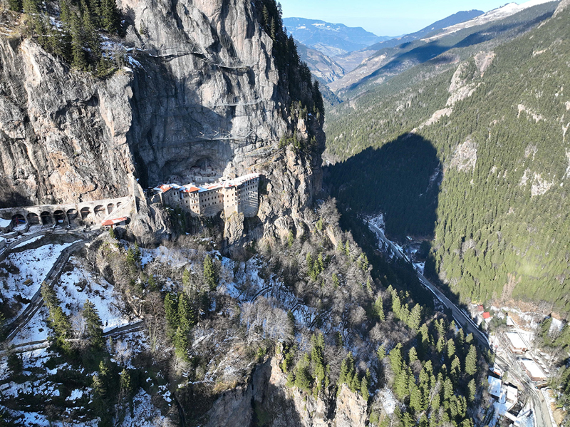 Sümela Manastırı eşsiz manzara eşliğinde Doğu Karadeniz Bölgesi'nin en çok ziyaret edilen turizm merkezlerinden biri olma geleneğini sürdürüyor. Bu yıl yaklaşık 435 bin turistin ziyaret ettiği Sümela Manastırı ziyaretçilerine doğa, tarih ve kültürü bir arada sunuyor. Bölgenin havadan çekilen görüntüleri hayran bırakırken, kış mevsimi olmasına rağmen ziyaretçisi sayısı eksik olmuyor.