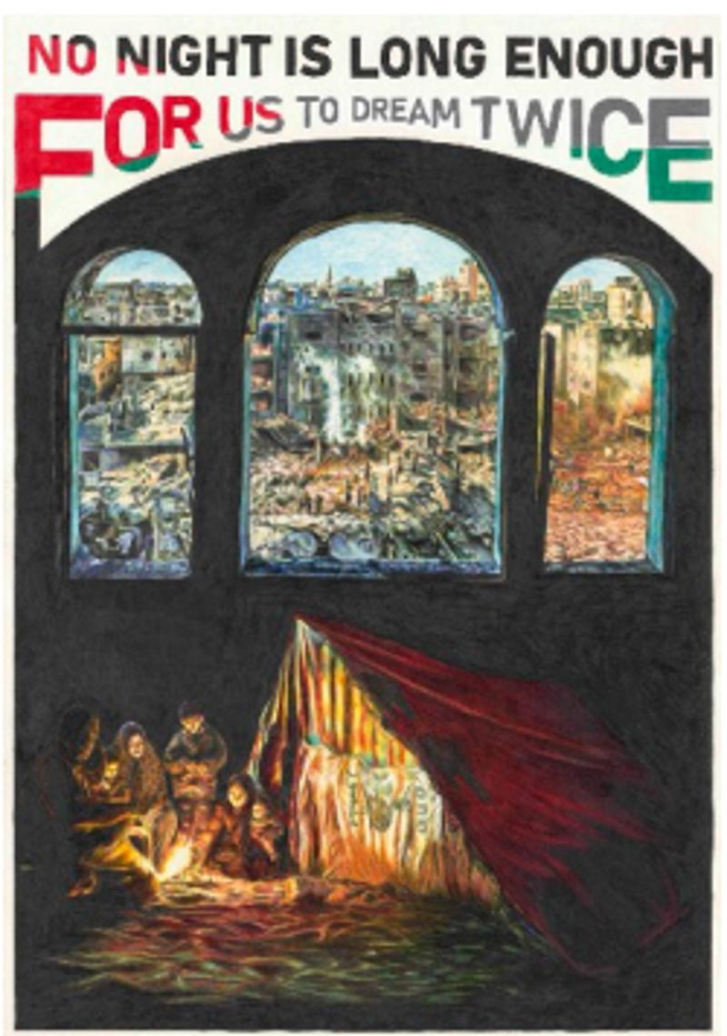 Sürgündeki Zeytin Ağacına Posterler, İsrail'in 2023 sonrasında Gazze'ye yönelik saldırılarının yol açtığı insani felaket karşısında sanatın etik bir tanıklık alanı olarak üstlendiği rolü vurgular. Sergi, izleyicileri bir trajediyi yalnızca gözlemlemeye değil; hatırlamaya ve hatırlatmaya—tarihin yaşamları, hikâyeleri ve coğrafyaları silmeye yönelen mekanizmalarına karşı direnmeye—davet eder.