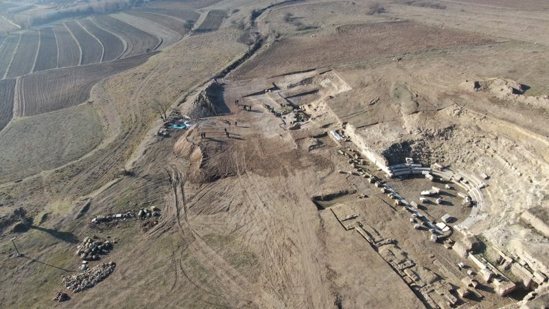 Tiyatro alanında yürütülen kazı çalışmaları hakkında bilgiler veren Kazı Başkanı Karabük Üniversitesi Öğretim Üyesi Doç. Dr. Mevlüt Eliüşük, "2024 yılı kazı sezonunda tiyatroda kazıları gerçekleştirdik. Tiyatronun hemen yanında daha önce jeoradar çalışmalarıyla tespit ettiğimiz ve küçük bir sondaj çalışması gerçekleştirilen alanda bir odeon, yani müzik dinleme yeri yapısı olduğunu biliyorduk. Odeonda kazılarımızı yoğunlaştırdık ve 2,5 aydır bu alanda çalışıyoruz. Odeon'da 2 metre kalınlığında kül tabakası kazdık. Bu da ne yazık ki antik kentte hiç görmek istemediğimiz bir durum. Çünkü mermer yakılarak kireç elde ediliyor. Bizim buradaki odeon da, tiyatroda da oturma sıralarının hepsinde neredeyse yakıldığı ve kireç haline dönüştürüldüğünü anladık. Oturma sıralarından günümüze ulaşan herhangi bir kalıntı çıkmadı. Sadece birkaç tane parça bulduk. Oturma sıralarının formunu tespit ettik. Kazılarımız halen yoğun şekilde devam ediyor. Yapı, tuğla ağırlıklı ana kayaya oturtulmuş bir yapı. Yapının tuğla duvarlarının üzerinin ise mermer ile kaplandığı anlaşılmaktadır. Birkaç yerinde de duvar resimlerinin olduğunu gördük" dedi.
