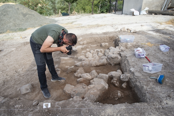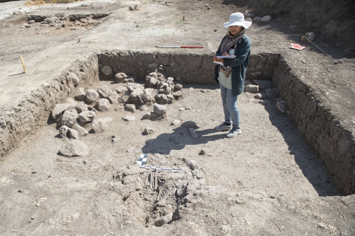 "Burada sit alanlarının sınırlarını belirlemeye çalışıyoruz. Yüzey toprağının hemen altından arkeolojik kalıntılar çıkmaya başladı. Kazının üçüncü gününde bir insan iskeleti açığa çıktı. Çocuk yaşlarda bir bireye ait. Toprağa açılan oval biçimli bir çukura büzülmüş biçimde yatırılmış bir birey, kuzey ve güney doğrultuda uzatılmış. Bu iskelet eski topluma ait ve o döneme ilişkin doğrudan bize bilgi sağlayan kalıntı olduğu için çok önemli."