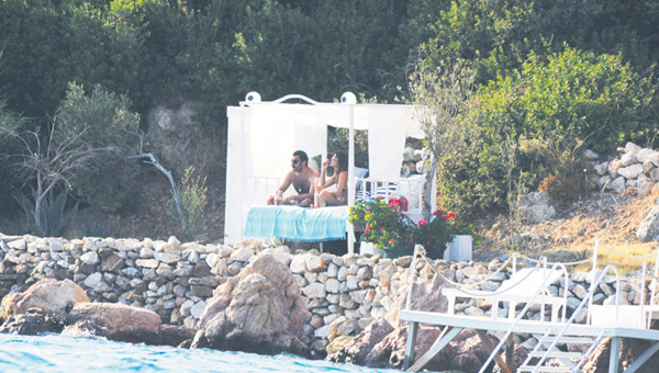 Hafta sonunu birlikte geçiren ikili, kumsalda oturup sohbet etti, uzun yürüyüşlere çıktı. Çift, ardından birkaç arkadaşlarıyla birlikte tekne turuna çıkıp koyları dolaştı. Keyfi yerinde olan Tüzünataç, bir ara teknenin yan kısmında esneme hareketleri yaptı. (Sabah)