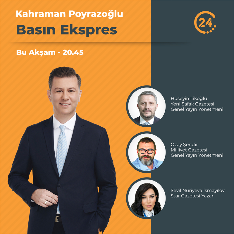 "Kahraman Poyrazoğlu ile Basın Ekspres" bu akşamdan itibaren her Salı saat 20.45'te 24 TV'de.