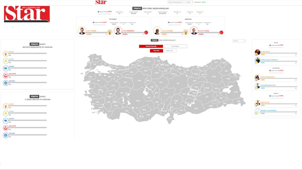 Yerel seçim sonuçları il il, ilçe ilçe seçim yasakları kalkar kalmaz en hızlı, doğru ve güvenilir şekilde Star Gazetesi'nde olacak.