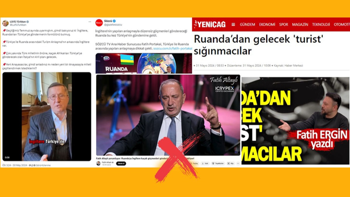"Bazı basın yayın organlarında yer alan ve sosyal medyada paylaşılan, 'Ruanda'dan turist sığınmacılar geliyor' iddiası kamuoyunu manipüle etmeye yönelik dezenformasyondur. Türkiye Cumhuriyeti Hükümeti ile Ruanda Cumhuriyeti Hükümeti Arasında Turizm Alanında İşbirliği Anlaşmasının yürürlüğe girmesi ile turizm alanındaki işbirliğinin arttırılması, turizm sektöründe yatırım ve girişimlerin teşvik edilmesi, sektördeki paydaşların eğitime tabi tutulması gibi konularda ülkeler arası hukuki zemin oluşturulmuştur. Turizm alanında ülkelerle yapılan işbirliği anlaşmaları, Türkiye'nin küresel anlamda ekonomik, ticari ve siyasi ilişkilerinin gelişmesine katkı sağlamakta ve orta/uzun vadede etkinliğinin artmasına zemin oluşturmaktadır."