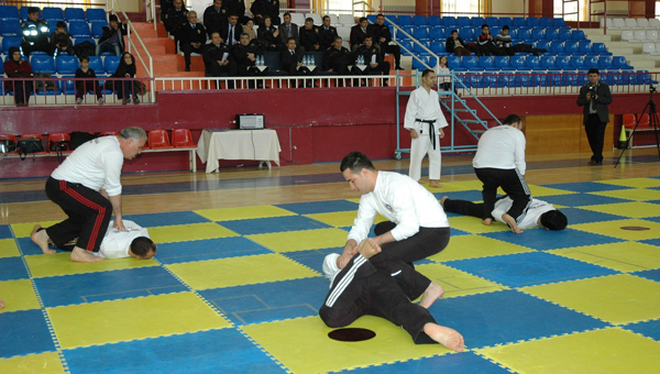 Yunus Emre Spor Salonu’nda gerçekleşen törene İl Emniyet Müdürü Lütfü Sönmez ile Müdür Yardımcıları ve Şube Müdürleri katıldı. Sertifika töreni öncesi yakın dövüş eğitimini tamamlayan 18 polis memuru törene katılanlara mini bir gösteri sundu. Gösterinin ardından konuşan İl Emniyet Müdürü Lütfü Sönmez, kendimizi zinde, dinamik ve beynimizin her bir hücresine her bir adalesine doğru hükmedebileceği bir vücuda sahip olmamız gerekiyor. Onun için bu çalışmamızı bir temel olarak kabul edip, diğer birimlerimize de imkanlarımız elverdiğince yansıtacağız. Bu seçim arifesi bizim için bir başlangıç oldu. Hiçbir art niyetli insanın kendinde cesaret bulamaması için bizim duruşumuzla, bakışımızla, ifademiz, tavır ve davranışımızın yanında gösterebileceğimiz anlık reflekslerde doğru ve zamanında olmalı ki, karşı tarafa bir caydırıcılık verebilelim. Bu düşünceyle arkadaşlarımız bilgileri zamanında aldılar ve bunu uygulayabilecek çevikliğe ulaştılar" dedi.