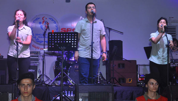 Atatürk Kapalı Spor Salonu'na Grup Yorum'u dinlemek için gelen yaklaşık 500 kişi, Gezi Parkı eylemlerinin yıl dönümü olması nedeniyle 'Her yer Taksim her yer direniş', '15'inde bir fidan Berkin Elvan', 'Faşizme karşı omuz omuza' sloganları attı. Grup Yorum solisti Seçkin Aydoğan, acılı ve üzüntülü olduklarını söyleyerek, "Olmazsa olmaz halaylarımız bugün olmayacak. Bugün Soma için yas tutuyoruz. Gezi Parkı'nda yaşamlarını yitiren genç fidanlar için yas tutuyoruz. Bugün onlar için bestelediğimiz şarkıları beraber okuyacağız" diye konuştu. Grup Yorum'un Berkin Elvan için bestelediği 'Uyan Berkin' ve Soma'da yaşamlarını yitiren madenciler için besteledikleri 'Yalnız Değilsin Soma' şarkıları sırasında hayranları hüzünlendi.