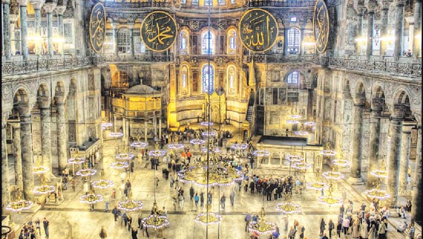 Dünyanın en uzun süre ibadet edilen mekanı, birbirine geçen kültürlere ve birbirine mirasçı olan iki dine ev sahipliği yapar. 1935’te müzeye çevrilen Ayasofya’yı her yıl üç milyondan fazla insan ziyaret etmekte. Çıkıştaki kapı, M.Ö 2 yüzyıla ait olup Tarsus’taki bir tapınaktan buraya getirilir.