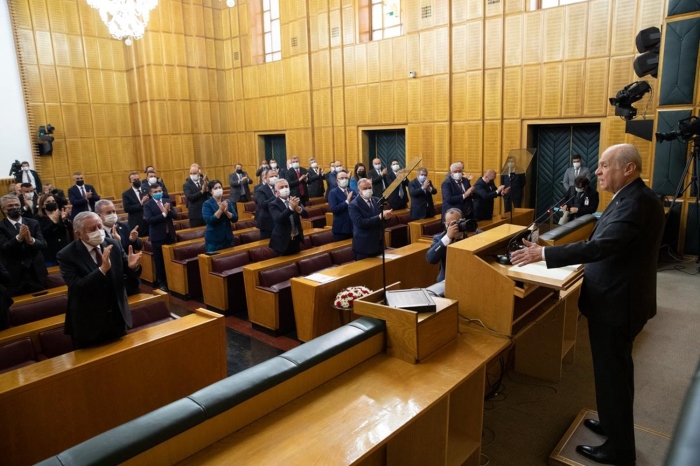 Tezkere oylamasında CHP ile HDP'nin "hayır" dediğini, İYİ Parti'nin ise çok az sayıda milletvekiliyle "evet" oyu kullandığını söyleyen Bahçeli, sözlerini şöyle sürdürdü: