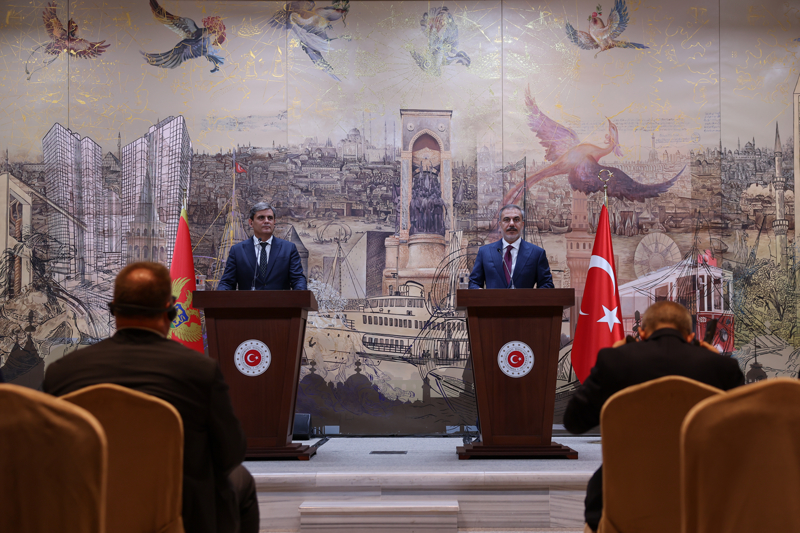 Dışişleri Bakanı Hakan Fidan, Karadağ Başbakan Yardımcısı ve Dışişleri Bakanı Ervin İbrahimovic ile İstanbul'da Dolmabahçe Cumhurbaşkanlığı Çalışma Ofisi'ndeki görüşmesinin ardından düzenlenen ortak basın toplantısında konuştu.