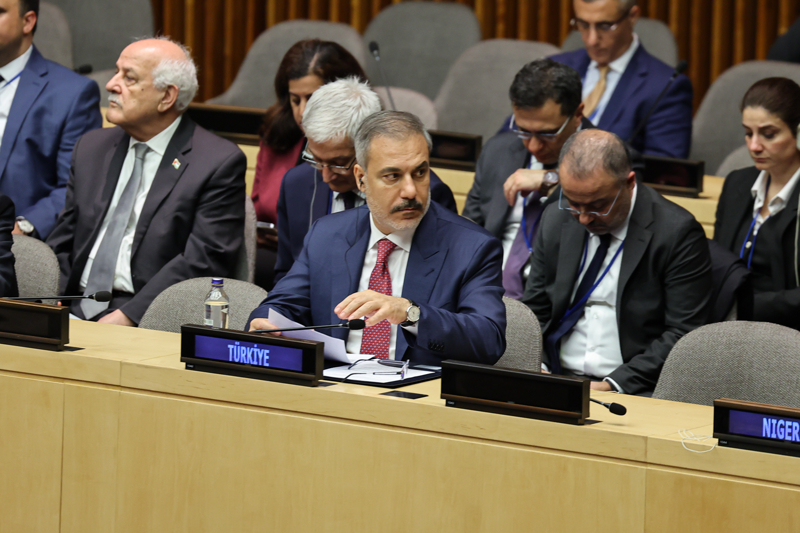 Fidan, Uluslararası Adalet Divanı'nın tavsiye kararı ve 10 Mayıs 2024 tarihli BM Genel Kurulu kararının yeni bir kapı açtığını belirterek, "Filistin Devleti BM'nin tam üyesi olmalıdır. Şimdi hedefimize bir veto kaldı." diye konuştu.