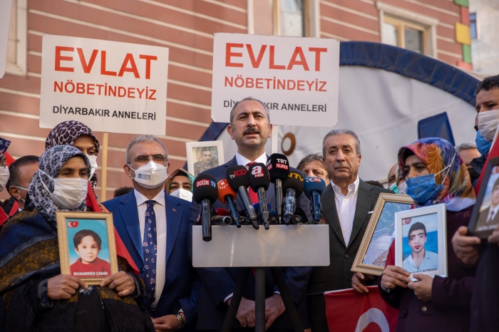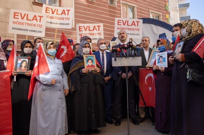 "Çocuk istismarından bahsedenler, burada en büyük çocuk istismarı var. Kadına şiddet diye ortalığı ayağa kaldıranlar, bir kadına yapılan en büyük şiddet evlatlarından ayrı kalması değil midir? Burada aynı zamanda kadına yönelik en büyük şiddet vardır. Ve bunu annelerimiz dile getiriyorlar. Yine insan hakları savunucuları, bir annenin evladından ayrı kalması en büyük insan hakları ihlali değil midir? Çocukların 14-15 yaşlarında dağlara çıkarılması, kaçırılması bir insan hakları ihlali değil midir, nerede dünyada insan hakları savunucuları, uluslararası insan hakları kurumları? Burada bir insan hakları ihlali, zulüm ortadadır. Ama ne çocuk ne insan hakları ne kadın savunucularının burada seslerinin çıkmaması da tarihe düşülmüş çok anlamlı manidar bir nottur. Diyarbakır'dan tüm dünya insan hakları mekanizmalarını, savunucularını eğer bu konuda samimiler ise bu feryadı bu çığlığı duymaya davet ediyorum."